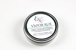 Our Natural Vapor Rub contains pure essential oils of eucalyptus, camphor, wintergreen & peppermint with organic olive oil and natural beeswax.